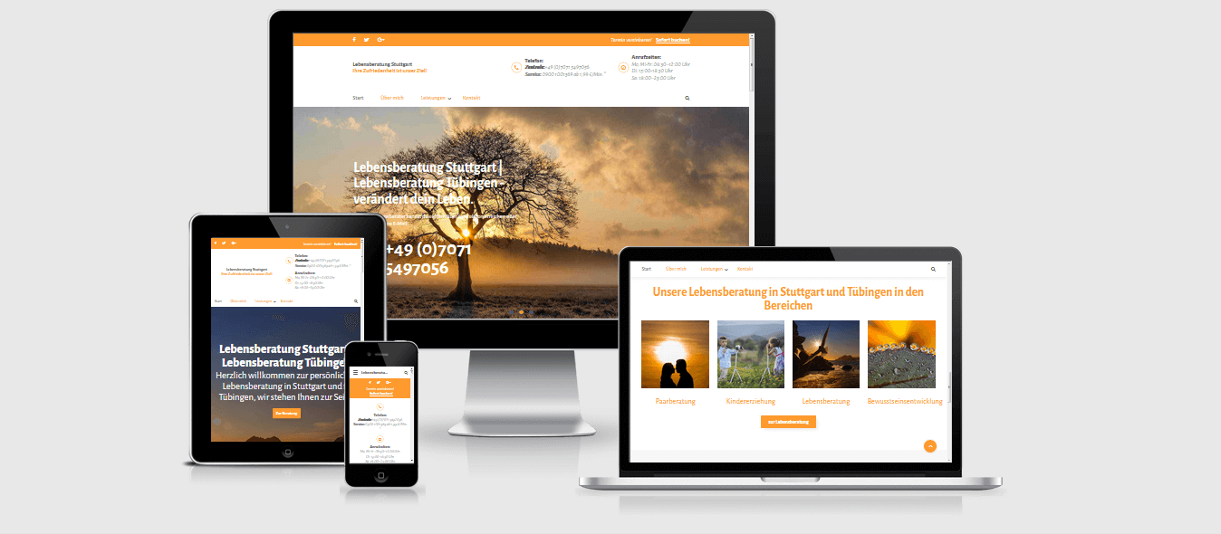 Erstellung einer responsive Website für eine optimale Darstellung auf mobilen Geräten wie Smartphones und Tablets. Die Schriftgröße und Bilder skalieren sich entsprechend der abgefragten Werte in der Breite und Höhe, wodurch ein einheitliches Design und Layout für sämtliche Gerätetypen sichergestellt ist.